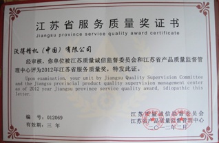 江蘇省產(chǎn)品質(zhì)量監(jiān)督管理中心2012年2月頒發(fā)